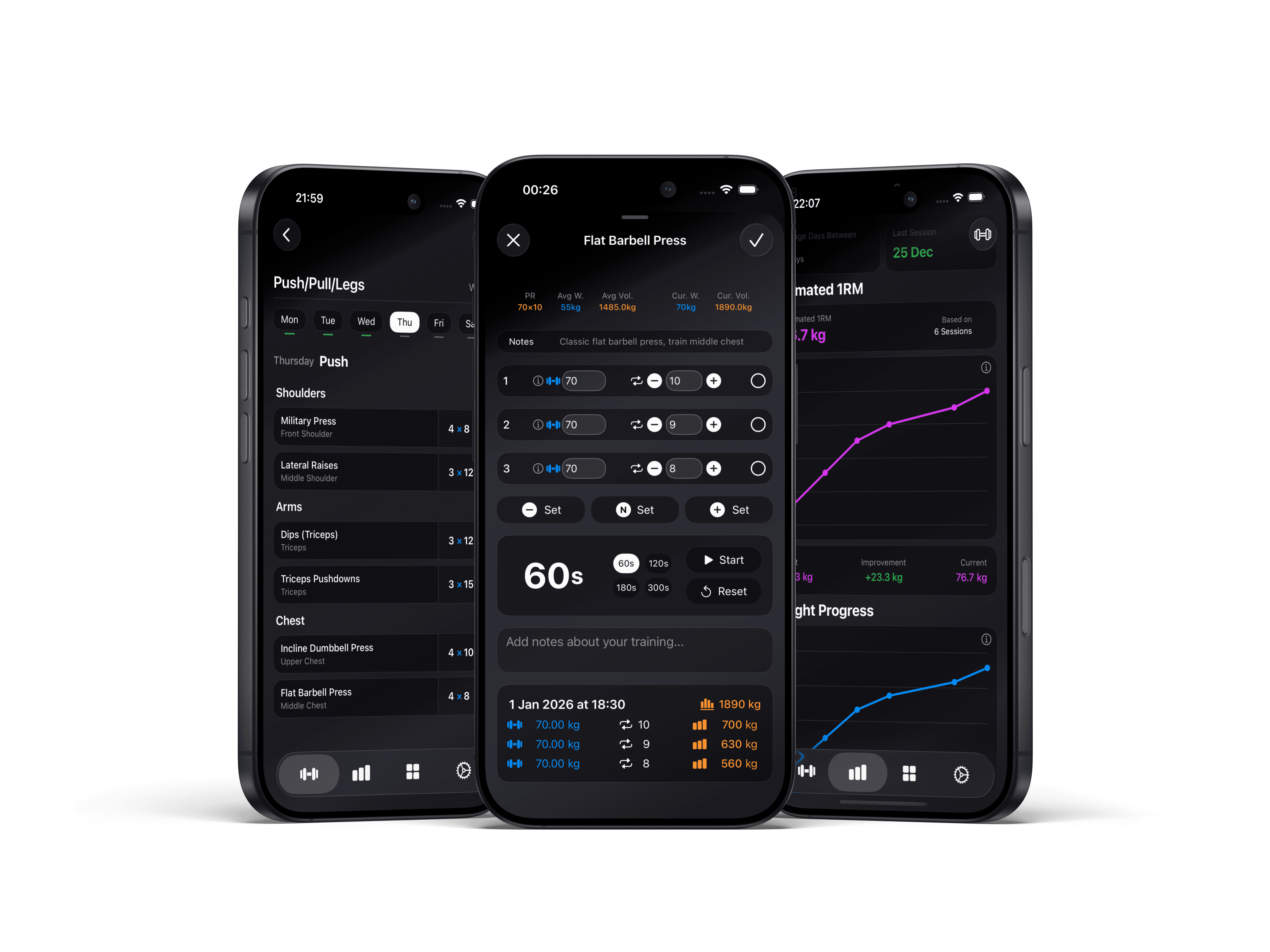 Log your sets and reps instantly and track your progress without distractions or unwanted notifications.